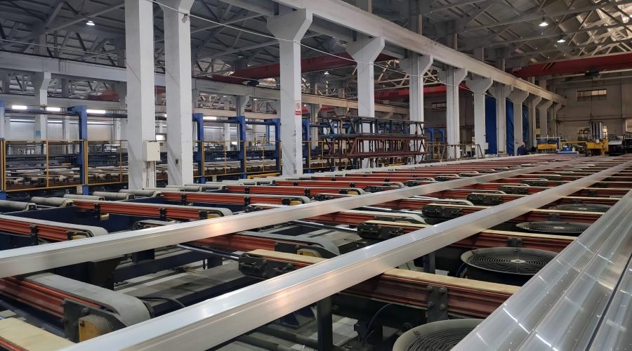 挤压成型是铝型材生产的核心环节,其工艺水平直接影响最终产品的性能和成本。精密挤压技术。新能源汽车结构件对尺寸精度要求极高,以门槛梁为例,其轮廓度需控制在0.8毫米以内。山东豪门铝业5500吨级新能源汽车门槛梁专用挤压生产线采用全球领先的短行程前上料挤压技术,配备智能温控系统和闭环反馈控制系统,可实现±0.05mm的超高精度控制。润滑技术创新。闽发铝业获得授权的“一种新能源汽车电池包铝合金型材挤压成型工艺”专利,通过微型抽吸泵和喷头配合喷洒润滑油,同时使用电机、锥齿轮、转杆、两个齿轮和两个齿圈带动环板旋转,实现均匀喷洒。借助润滑油降低铝棒表面的摩擦力,可显著提高加热后铝棒的挤压成型效果。热处理与冷却控制。挤压成型后的在线淬火是决定型材最终力学性能的关键。对于6系和7系等高强度铝合金,冷却速度不足会导致强度下降,而冷却不均则会引起型材扭曲变形。现代挤压生产线通过配备多级、可调风量的冷却系统,确保大截面型材获得均匀冷却,在获得高强度的同时保持优异平整度。