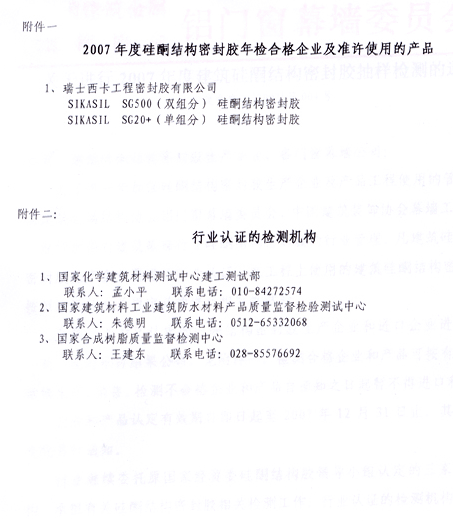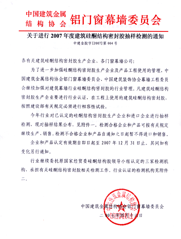 关于进行2007年度建筑硅酮结构密封胶抽样检测的通知